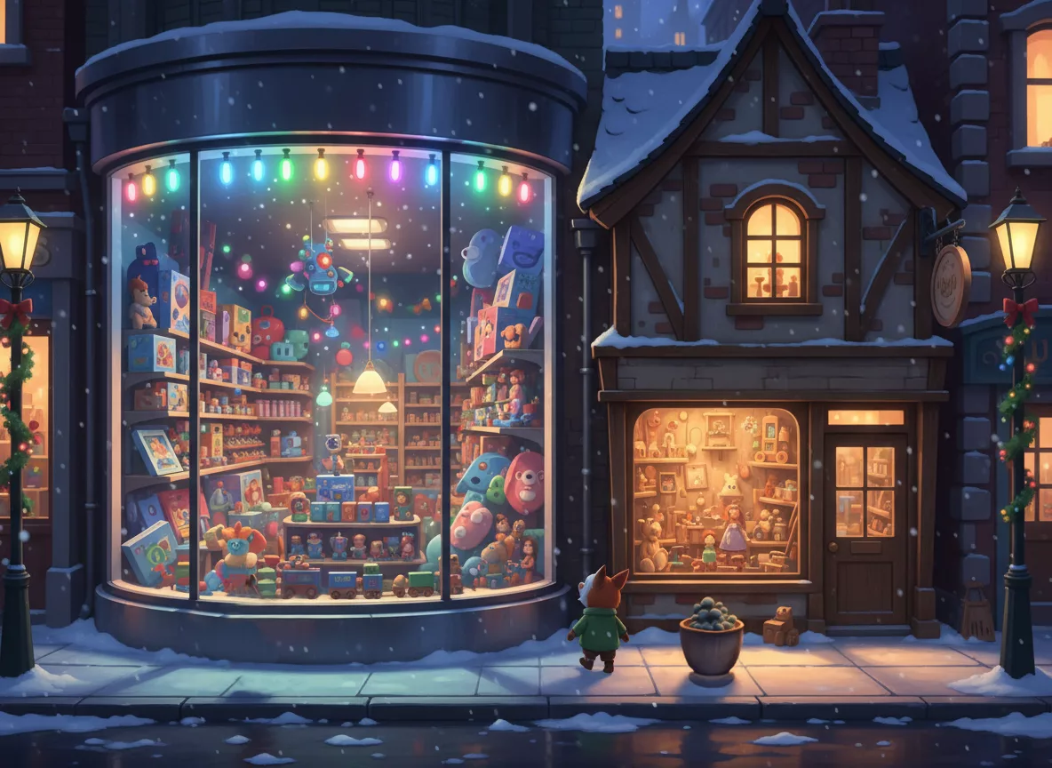 La magie de Noël explosa dans toute sa splendeur ! Les couleurs dansaient, les textures brillaient, et chaque jouet semblait prendre vie dans cette mise en scène féerique.